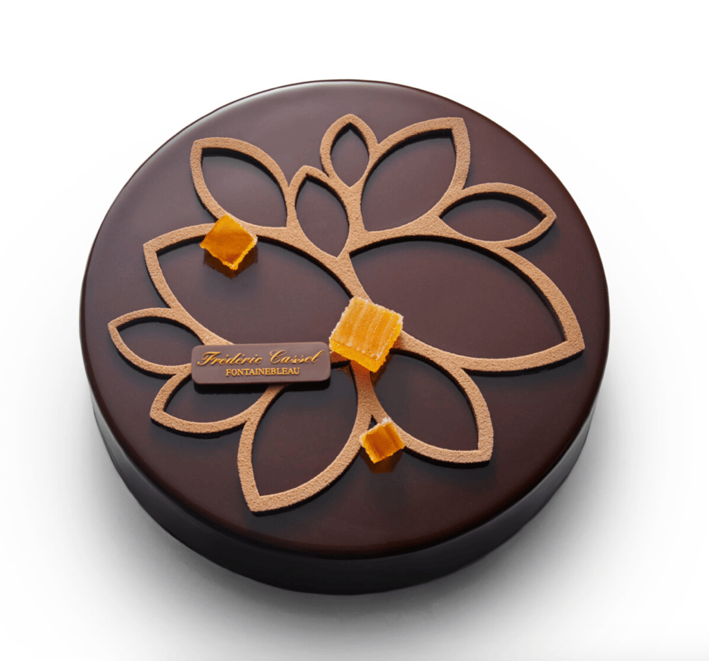 Sous son glaçage miroir d’un brun profond, l’entremets Carabao de Frédéric Cassel déploie toute la puissance aromatique d’un chocolat d’exception. Son élégance graphique, soulignée par un décor floral en chocolat velours et quelques éclats fruités, révèle un dessert raffiné où intensité et délicatesse s’entrelacent. Une ode à la richesse du cacao, travaillée avec précision et subtilité.