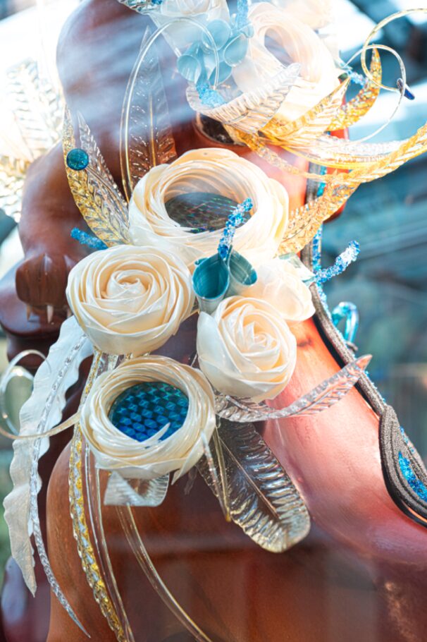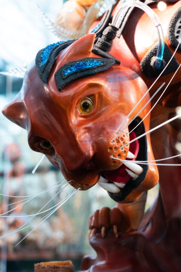 Présentée sous cloche, dans une vitrine aux dimensions précises, cette pièce constitue un exercice d’équilibre entre créativité, technicité et harmonie des matières. Chaque détail compte : volumes, lignes, couleurs, lisibilité du message et cohérence de l’ensemble.